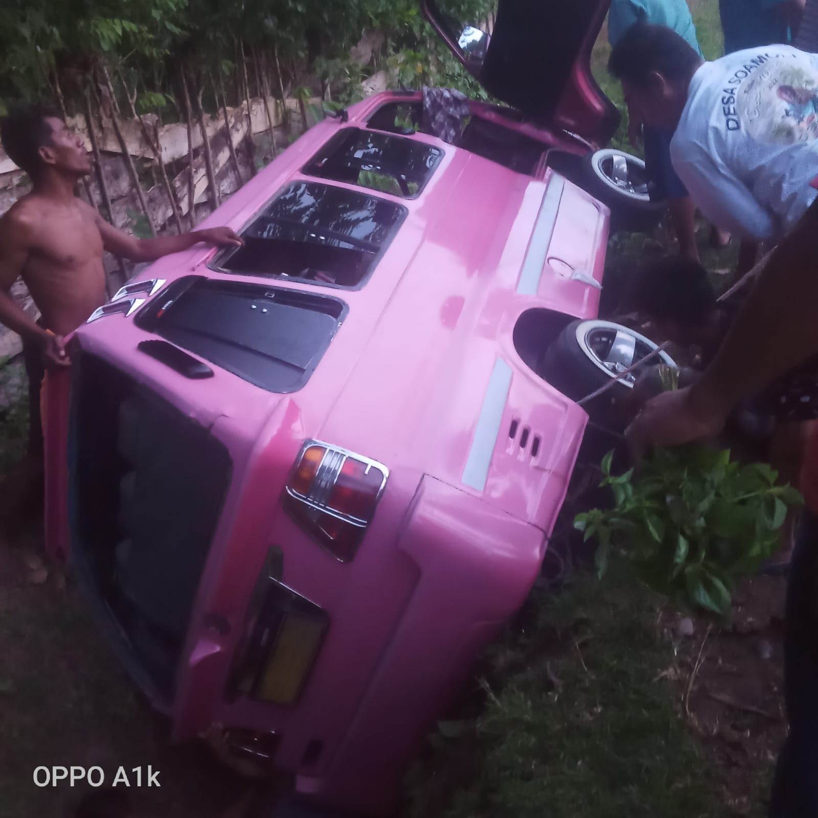 Dua orang penumpang yang mengalami luka-luka ringan itu bernama Juwaira dan Nursan. dan satu orang sopir laki-laki bernama Naryo. mereka adalah warga desa waiman.