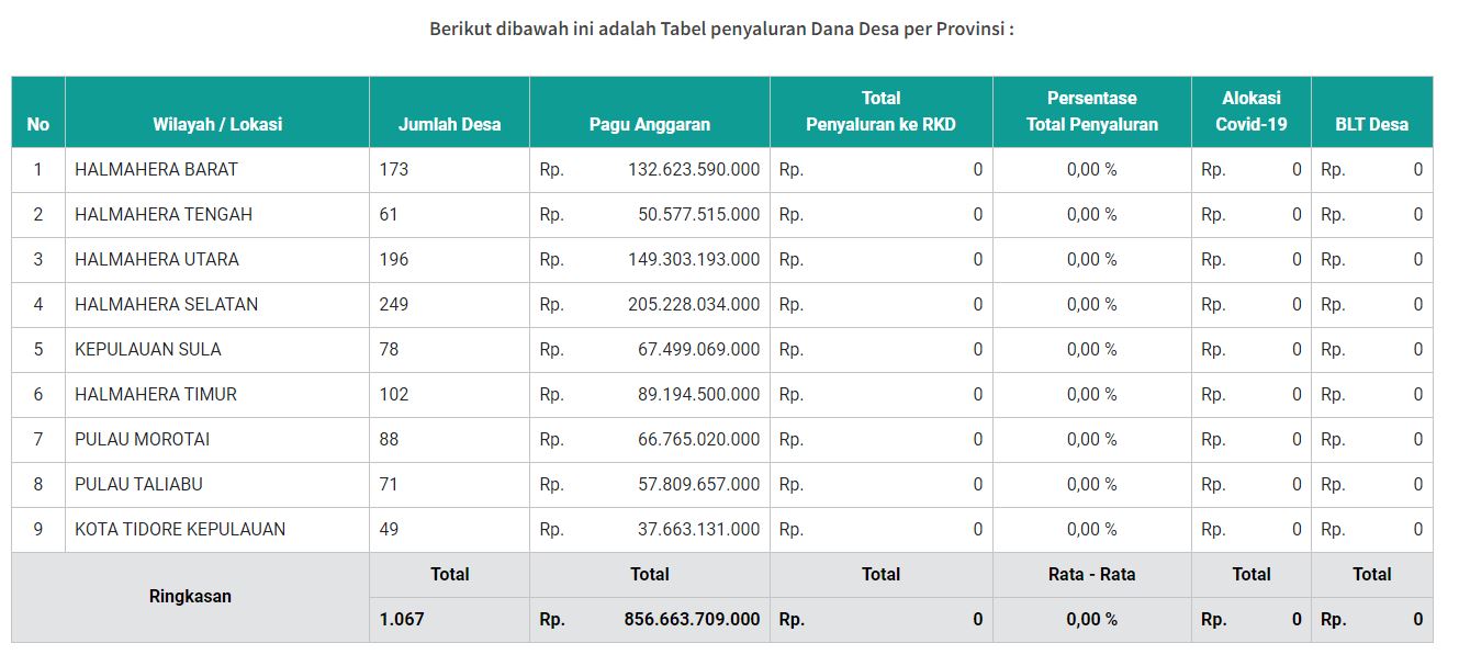 Berikut rincian lengkap alokasi anggaran untuk setiap kabupaten dan kota di Maluku Utara.
