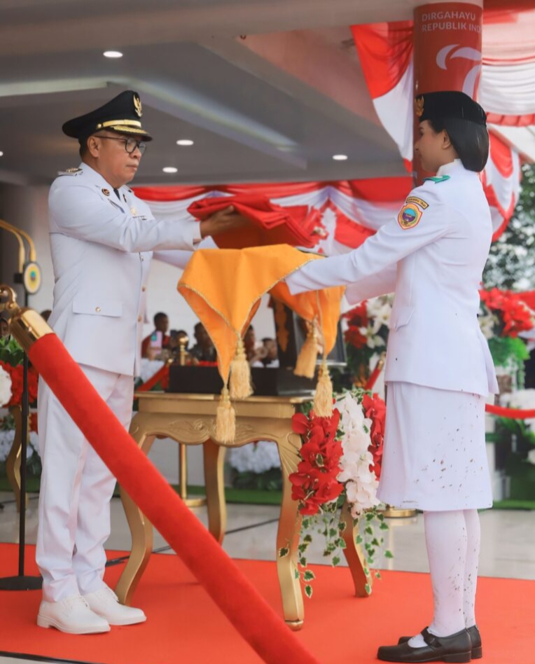 Pengerek Bendera adalah Dwi Petra Jela-Jela, Tempat, Tanggal Lahir : Tobaru, 23 Maret 2008, Asal Sekolah : SMK Negeri 1 Halteng.