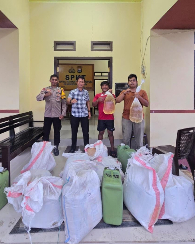 Dari razia itu, petugas berhasil menyita sejumlah miras jenis cap tikus yang kemanas dalam kantong plastik dan Cergen dengan Jumlah BB Miras Jenis Cap Tikus Sebanyak 170 Liter dan Petugas kemudian mengamankan pelaku untuk di proses Tipiring.