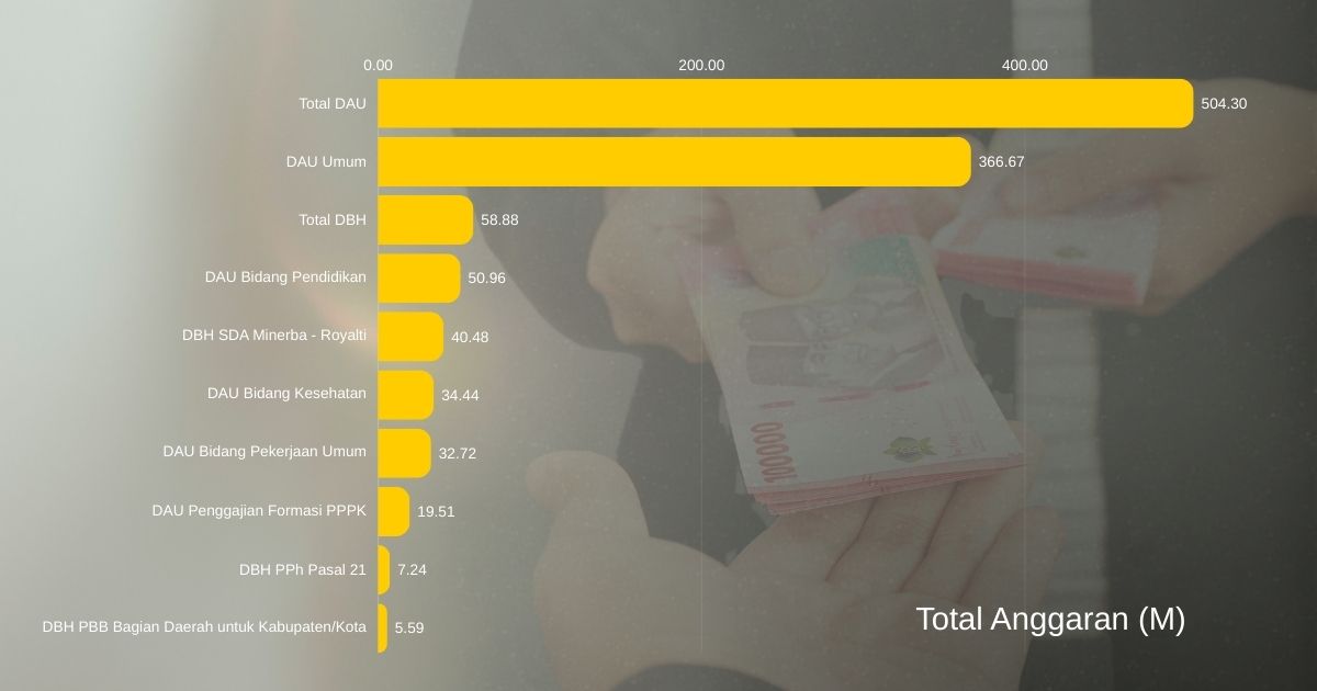 Sementara itu, DAU juga mengalami hal serupa, dari total anggaran sebesar Rp 366,67 miliar, yang baru cair Rp 91,67 miliar. Beberapa bidang yang mendapat DAU, seperti sektor Kesehatan, Pendidikan, dan Pekerjaan Umum belum ada pencairan sama sekali alias nol persen.