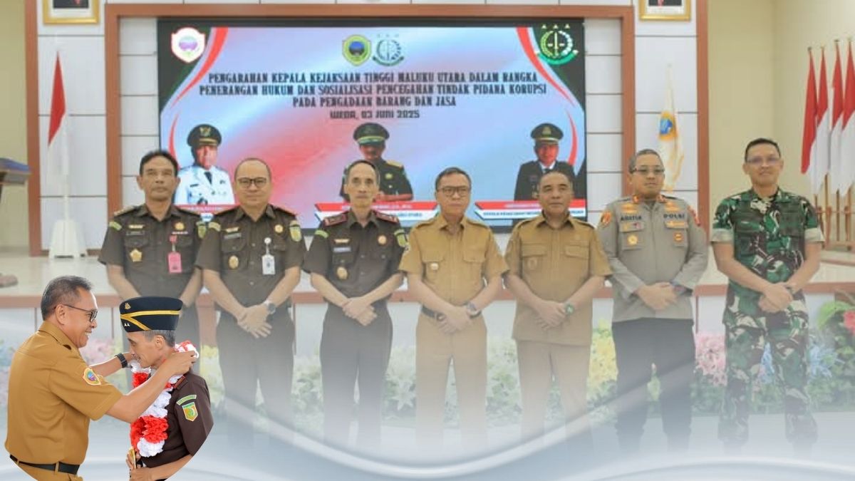 Halteng, Transtimur.com – Pemerintah Daerah Kabupaten Halmahera Tengah (Pemda Halteng) menerima kunjungan kerja Kejaksaan Tinggi Maluku Utara, Selasa (3/6/2025), dalam kegiatan Penerangan Hukum bertema “Sosialisasi Pencegahan Tindak Pidana Korupsi dalam Pengadaan Barang dan Jasa”, yang berlangsung di Aula Kantor Bupati Halteng.