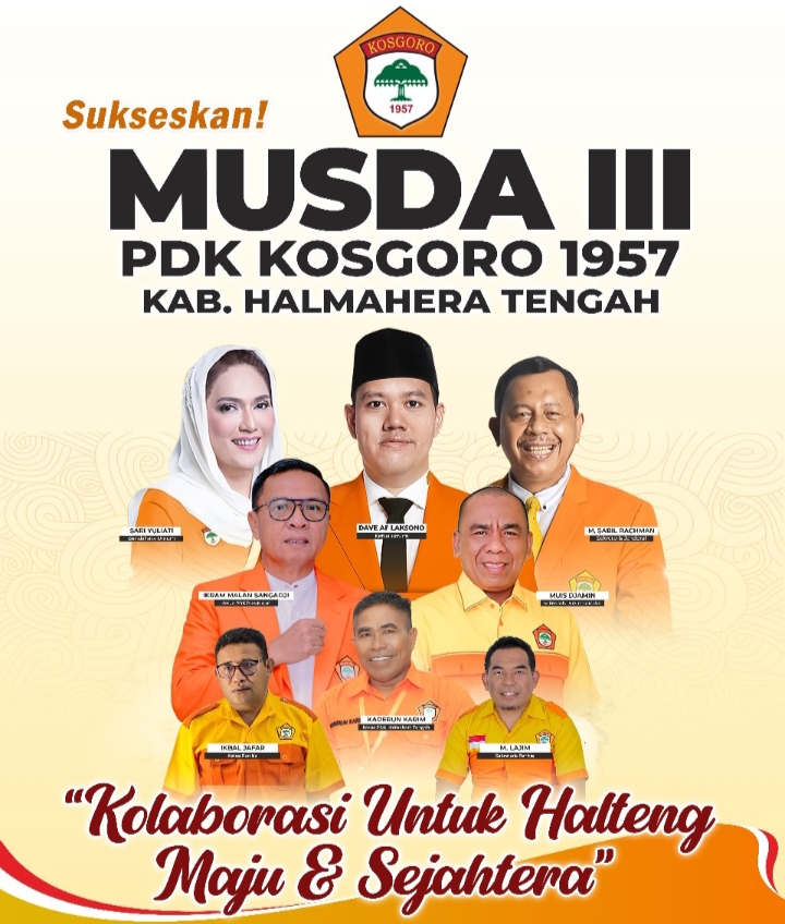 Halteng, Transtimur.com – Musyawarah Daerah (Musda) Ke-3 (Tiga) Pimpinan Daerah Kolektif (PDK) Kosgoro 1957 tingkat Kabupaten Halmahera Tengah (Halteng), Maluku Utara, akan digelar di tanggal 6 Agustus 2025. Musda tersebut diketahui rencananya akan dilaksanakan di Kafe Boss tepatnya di Jalan Kilo 3, Kecamatan Weda.