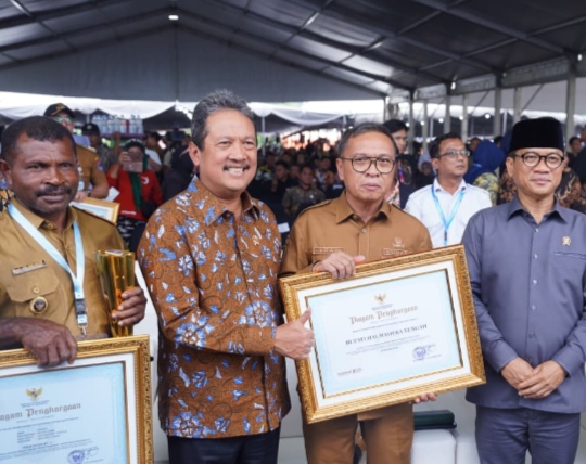 Di momentum tersebut, Kabupaten Halmahera Tengah berhasil memboyong dua penghargaan tingkat nasional sekaligus, yaitu Penghargaan Upakarya Wanua Nugraha Tahun 2025 dan Penghargaan Peringkat I Tata Kelola Pemerintahan Desa dan kelurahan di Regional IV.