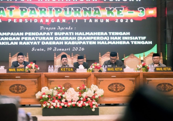 Halteng, Transtimur.com – DPRD Halmahera Tengah, Maluku Utara, secara resmi menyelenggarakan Rapat Paripurna Ke-3 dan Ke-4 Masa Persidangan II, yang berlangsung khidmat di Ruang Gedung Sidang Paripurna DPRD Halteng, Senin (19/1/2026).