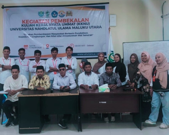 Ternate, Transtimur.com – Sebanyak 20 Mahasiswa Universitas Nahdlatul Ulama Maluku Utara (UNUTARA) mengikuti pembekalan Kuliah Kerja Nyata Umat (KKNU) Tematik Tahun 2026, sebagai tahap persiapan sebelum mahasiswa diterjunkan langsung ke lokasi pengabdian masyarakat.